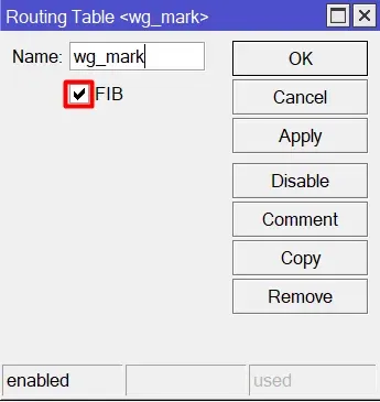 Укажите Name: wg_mark, включите опцию FIB. Нажмите OK.