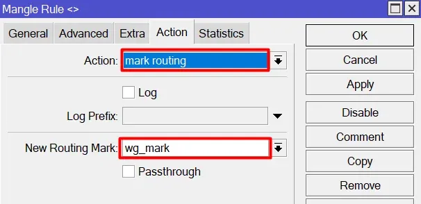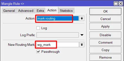 - В IP → Routes удалите маршрут с Routing Table: wg_mark.