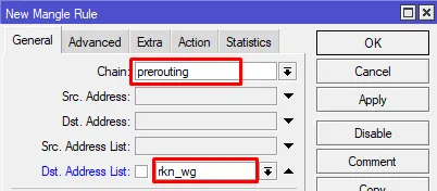 - В IP → Firewall → Mangle удалите правила с New Routing Mark: wg_mark.