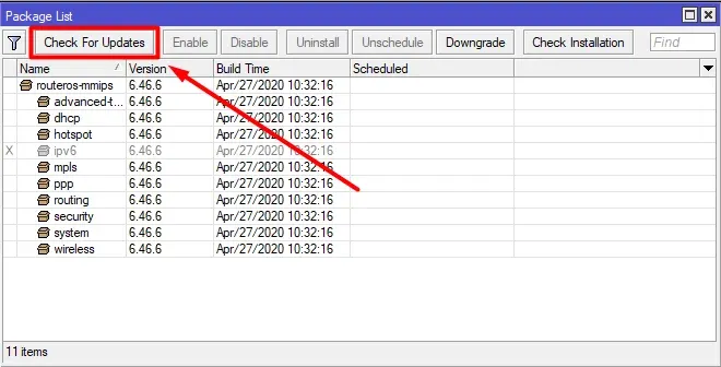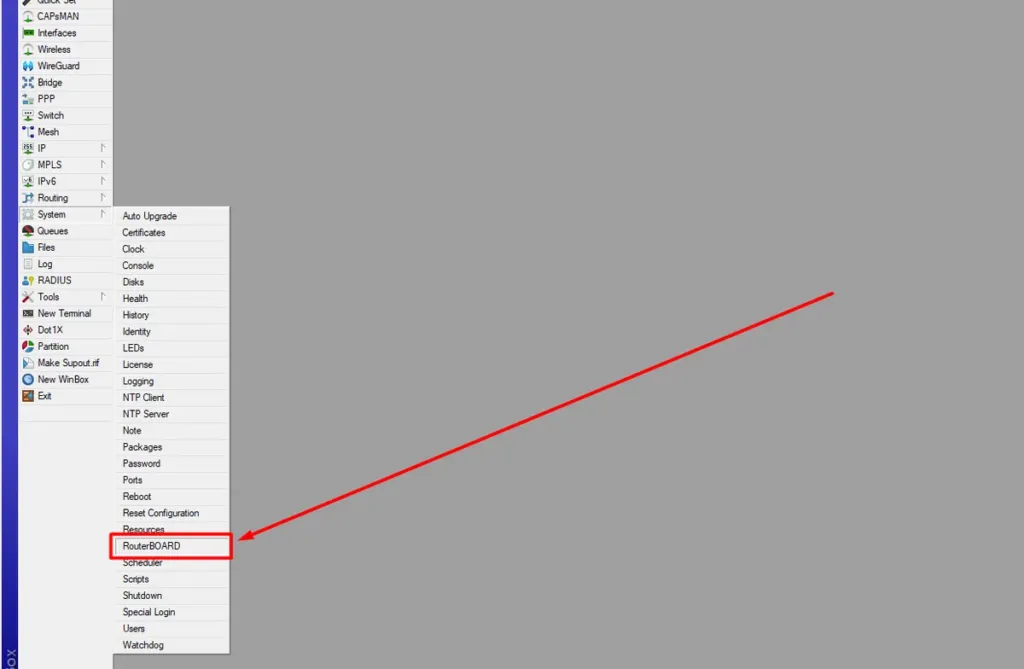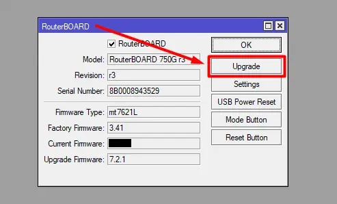 Перейдите в System → RouterBOARD и нажмите Upgrade.