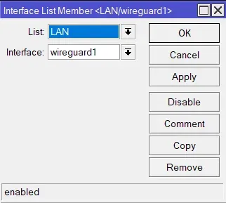 wireguard1в список LAN для корректной работы правила Firewall defconf: drop all not coming from LAN.