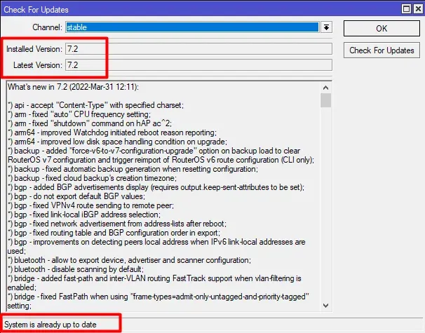 Подготовка к настройке WireGuard: Обновление RouterOS